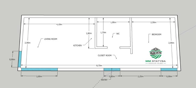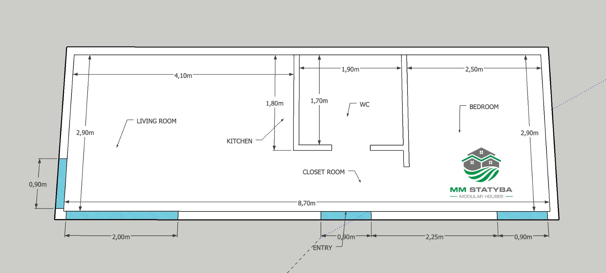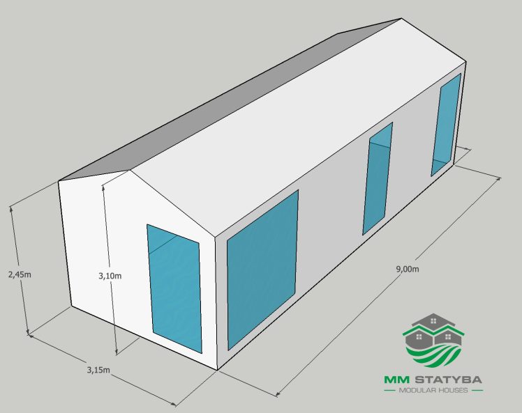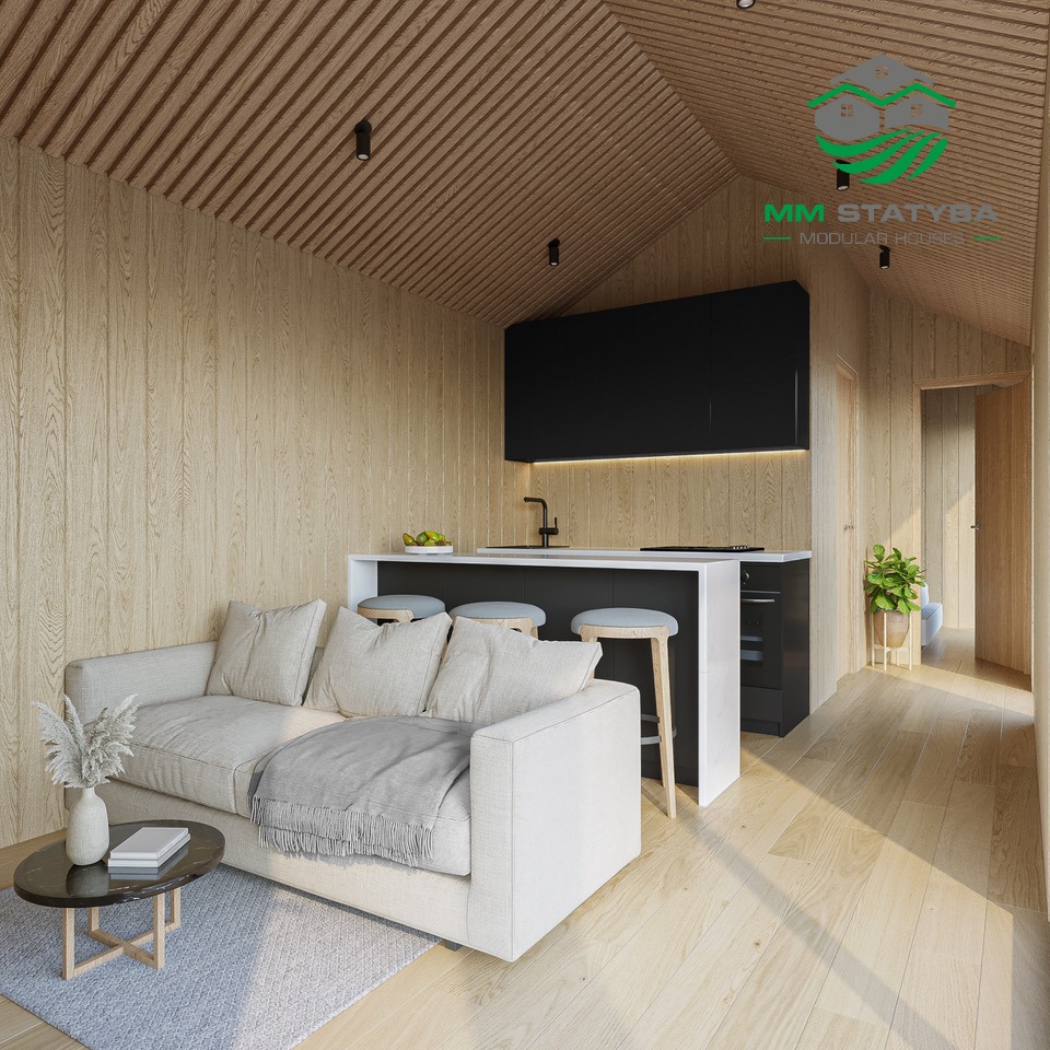 Looking for a modern and spacious living space? Our ~9.0m x 3.15 m x 3.10 m, approx. 25 sq. m inside mobile wooden frame house is the perfect solution, offering enough space to accommodate all your needs. With living room, kitchen, separate bedroom, bathroom this house has everything you need for comfortable living. Customize your living space to perfectly fit your lifestyle with our modular frame house solutions.