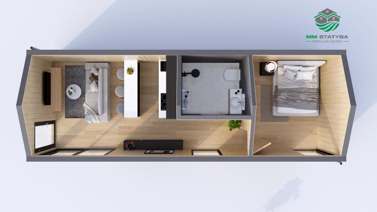 ~ 25 sq.m Mobile Modular House with bedroom, bathroom, living room and kitchen